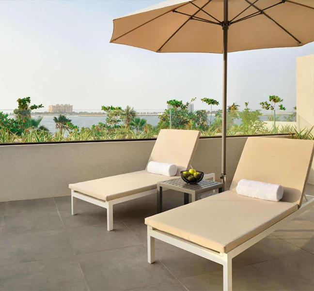 This incredible resort has 418 rooms, with minimalist vibes and excellent views. Choose from Deluxe Rooms, Family Rooms, Panoramic Bridge Junior Suites, Al Marjan Beachfront Suites with Private Pool and Junior Suites Beachfront with Terrace.