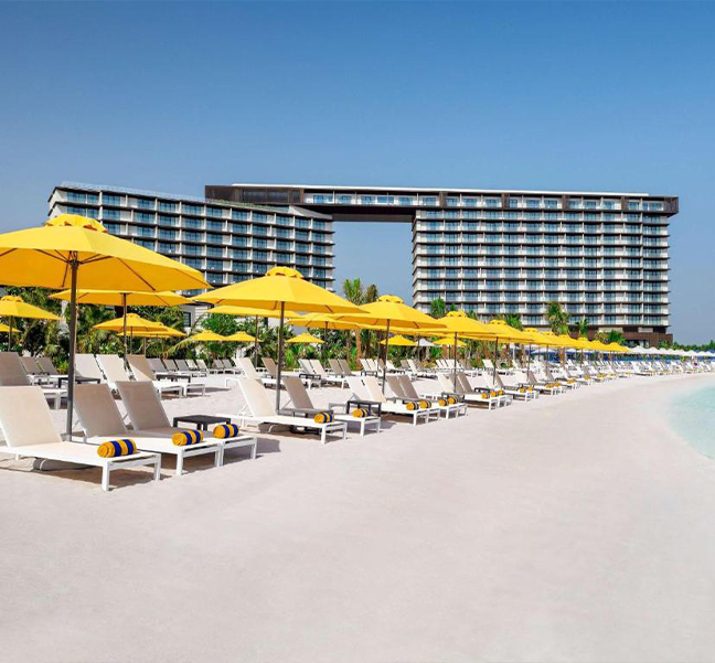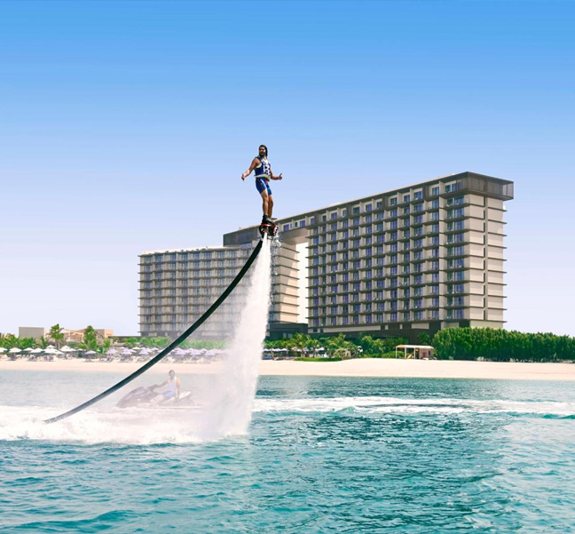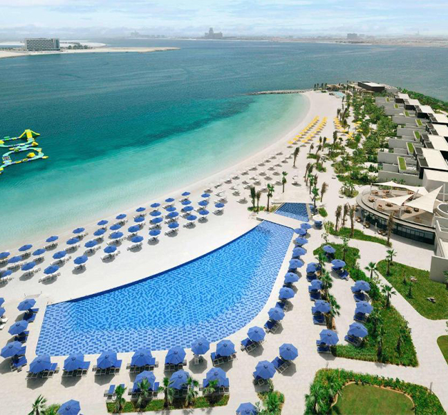 This incredible resort has 418 rooms, with minimalist vibes and excellent views. Choose from Deluxe Rooms, Family Rooms, Panoramic Bridge Junior Suites, Al Marjan Beachfront Suites with Private Pool and Junior Suites Beachfront with Terrace.