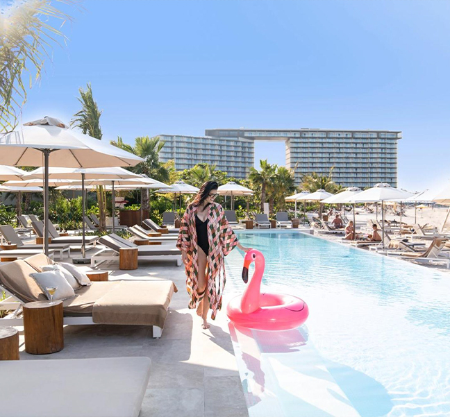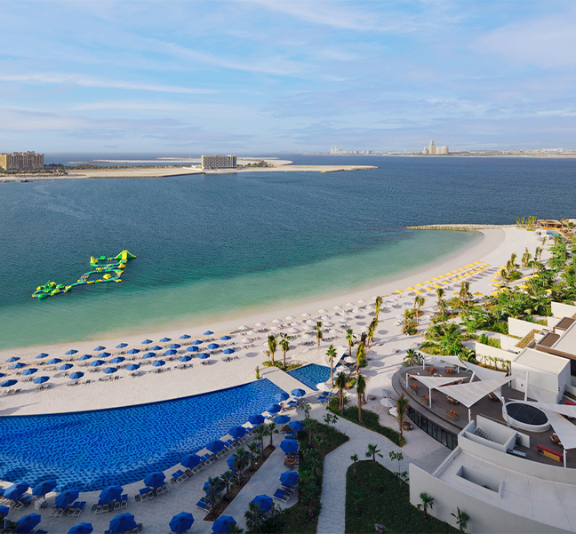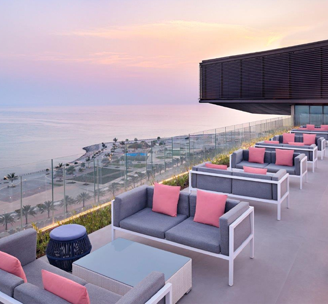 This incredible resort has 418 rooms, with minimalist vibes and excellent views. Choose from Deluxe Rooms, Family Rooms, Panoramic Bridge Junior Suites, Al Marjan Beachfront Suites with Private Pool and Junior Suites Beachfront with Terrace.