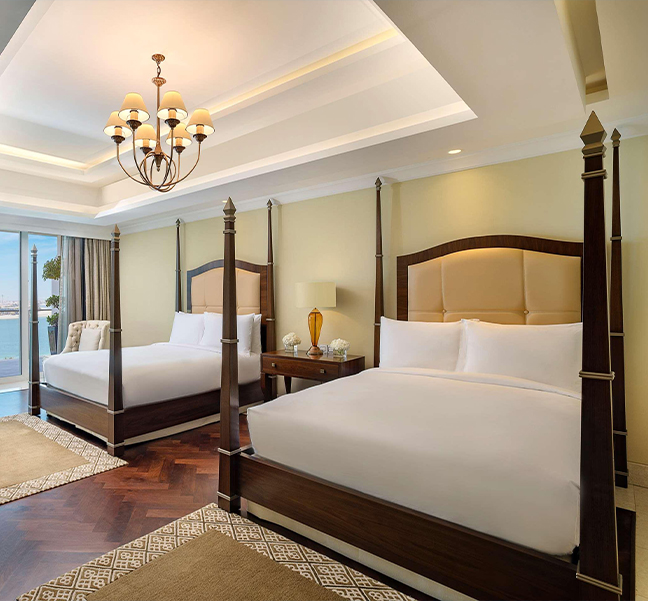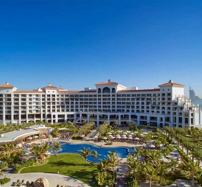 Waldorf Astoria Dubai Palm Jumeirah is located on the beachfront.